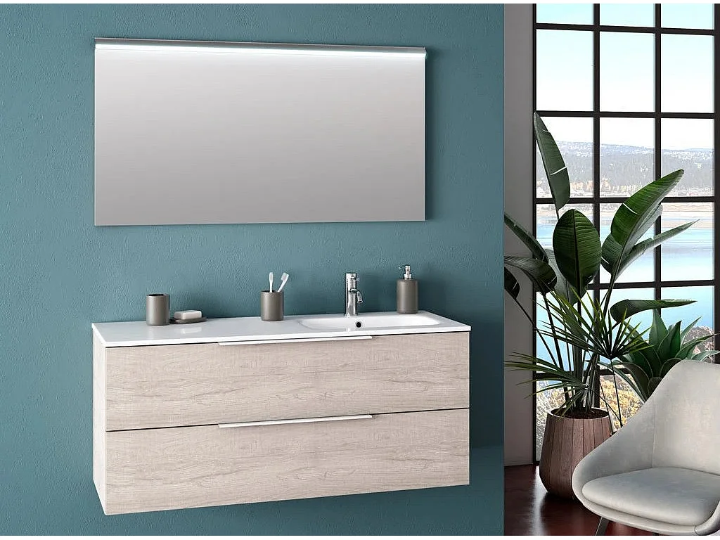 Ensemble meuble de salle de bain 2 tiroirs bois gris clair et miroir à LED Malo L 120cm